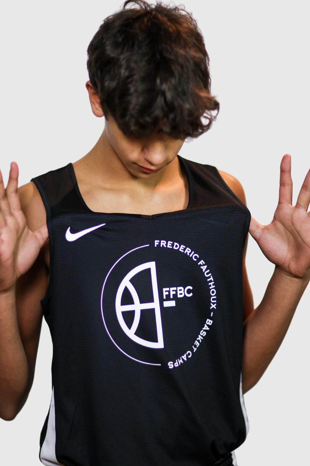 Maillot Nike de basket réversible noir et blanc, léger et respirant. Parfait pour l’entraînement et les matchs.Personnalisation possible : nom, prénom ou numéro au choix.