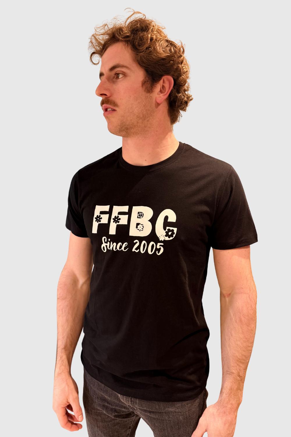 Tee-shirt noir en coton doux et résistant, avec le logo “FFBC Since 2005” imprimé sur l’avant.